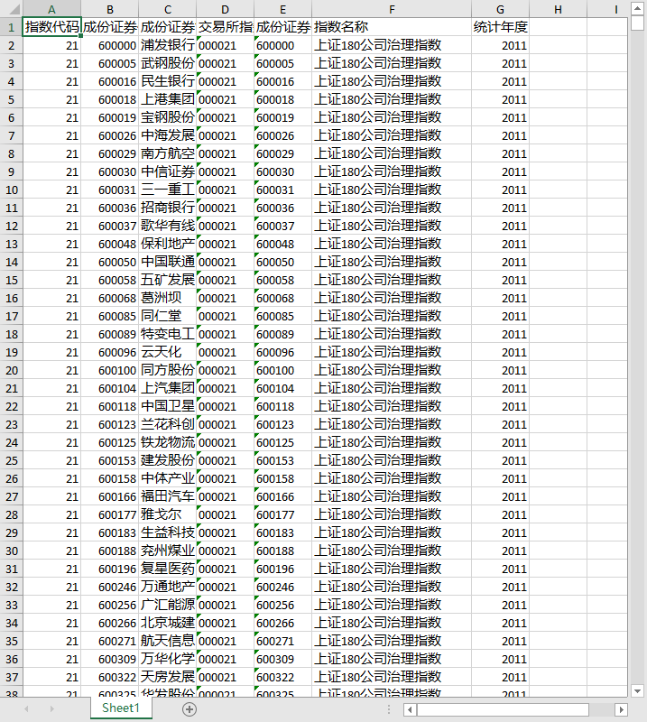指数代码 成份证券代码 成份证券简称 交易所指数代码 成份证券代码c 指数名称 统计年度