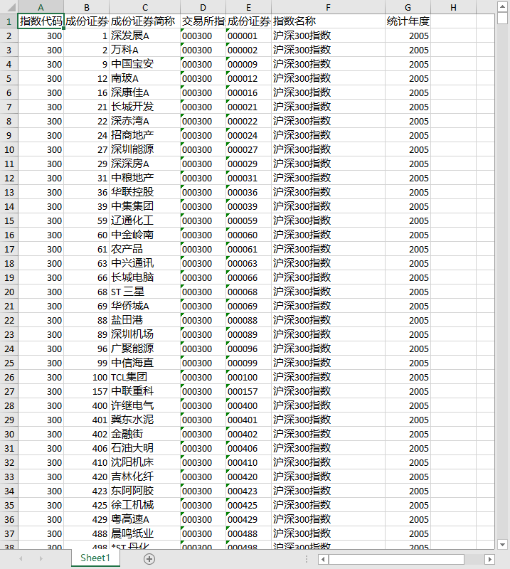 指数代码 成份证券代码 成份证券简称 交易所指数代码 成份证券代码c 指数名称 统计年度