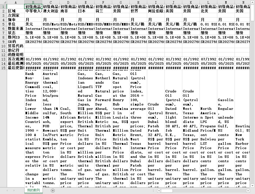 全球世界各国地区初级商品价格月度季度年度数据1992-202505能源农业原料金属进口价格等