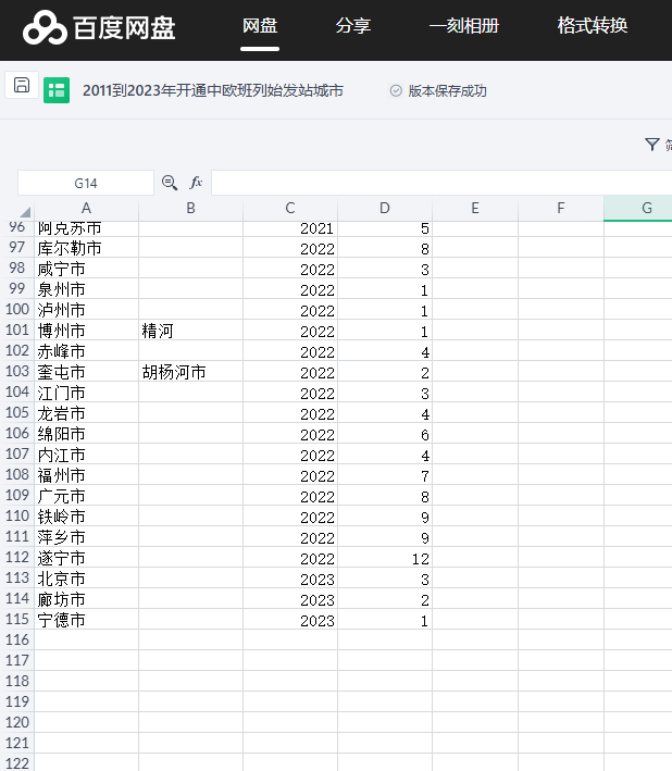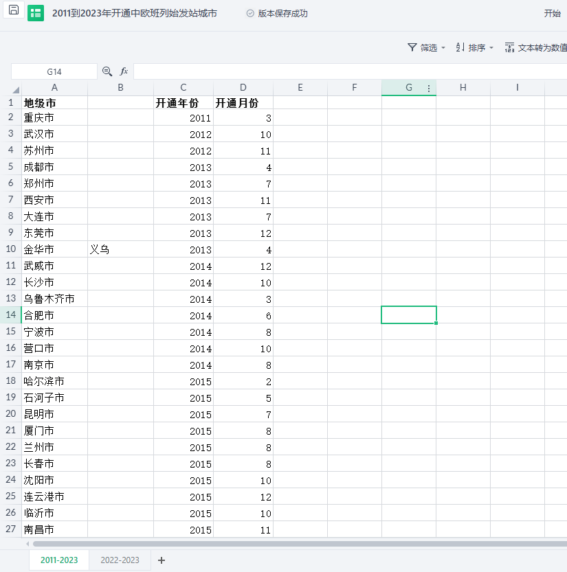 包含指标:地级市、开通年份、开通月份