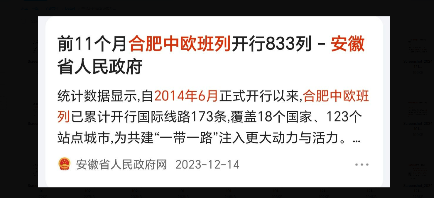 数据整理中欧各班列始发城市及开通时间包括开通年月,数据来源于中欧班列网、人民网、新华网、央视网、中国网等多家权威机构,并附截图。
