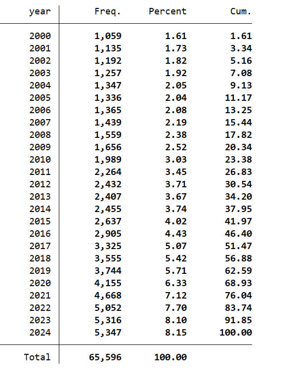 - 文件格式:Dta格式(使用Stata打开)、Xlsx格式(使用Excel打开)