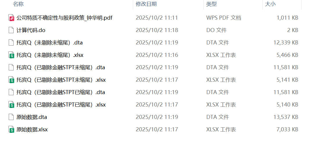 - 三个版本:托宾Q(未剔除未缩尾)、托宾Q(已剔除金融STPT未缩尾)、托宾Q(已剔除金融STPT已缩尾)