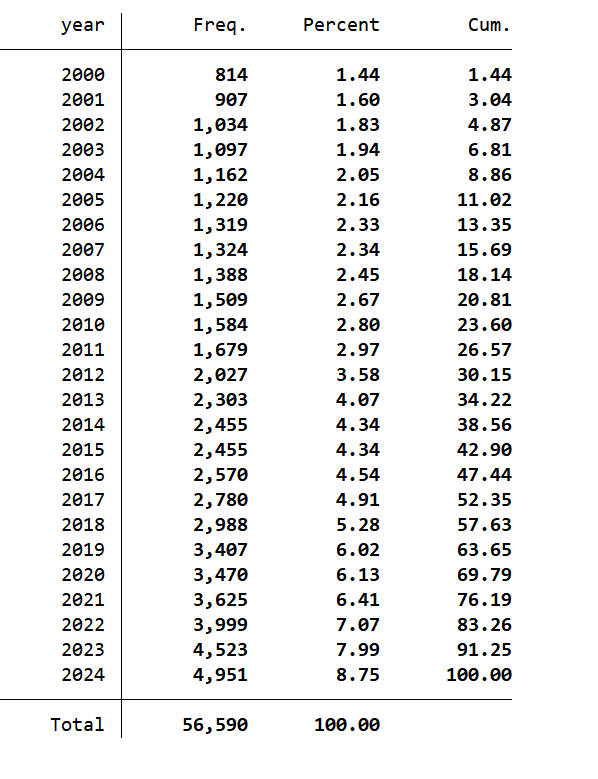 - 文件格式:Dta格式(使用Stata打开)、Xlsx格式(使用Excel打开)
