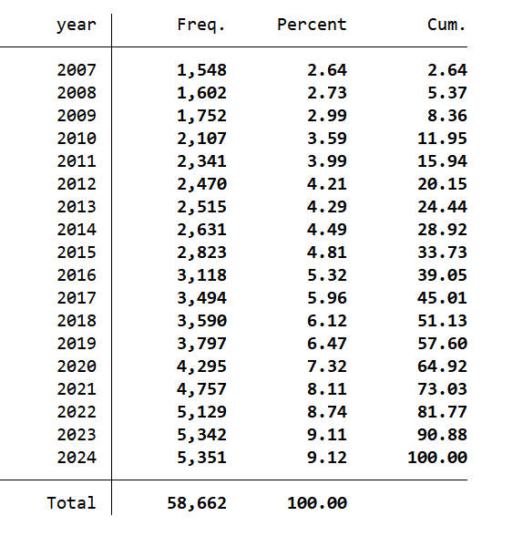 - 文件格式:Dta格式(使用Stata打开)、Xlsx格式(使用Excel打开)