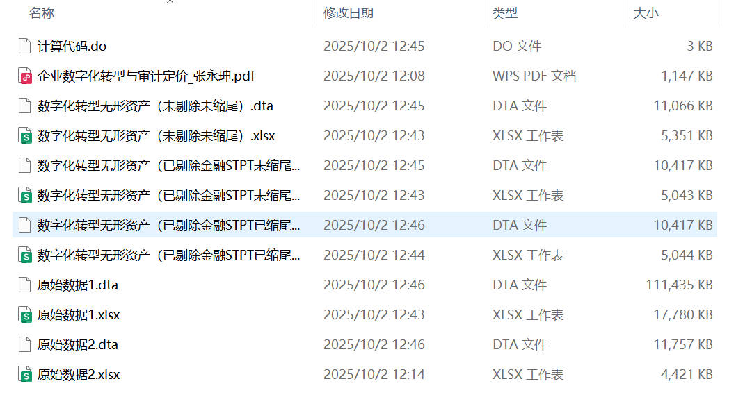 - 三种版本结果:数字化转型无形资产(未剔除未缩尾)、数字化转型无形资产(已剔除金融STPT未缩尾)、数字化转型无形资产(已剔除金融STPT已缩尾)