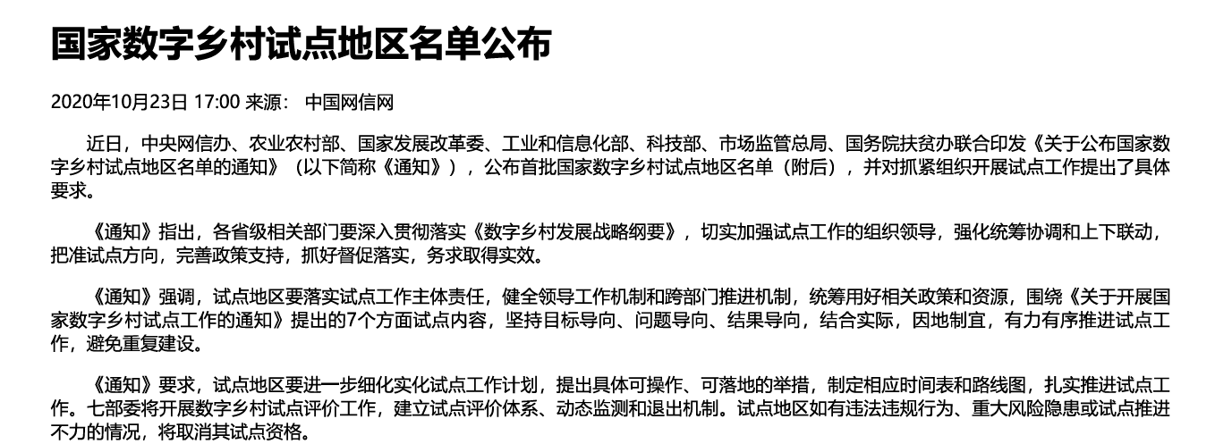 数据来源:《国家数字乡村试点地区名单》