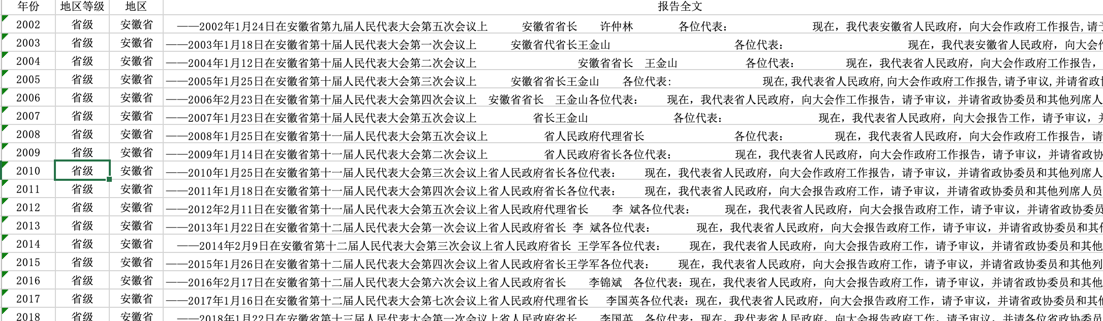 数据名称:全国省级政府工作报告