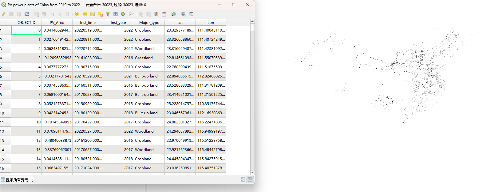 数据使用语义分割模型(TransUNet)从Sentinel-2卫星影像获取光伏电站的空间位置和范围,并采用连续变化检测和分类(CCDC)算法从Landsat时序卫星影像估计每个光伏电站的安装日期。最终得到2010—2022年中国光伏电站安装时间的多边形地理空间数据集。