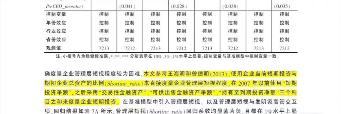胡楠MD&A文本分析: 管理者短视主义( Myopia)。结合已有的能够体现管理者“短期视域”的43个中英文词集,包括“天内、数月、年内、尽快、立刻、马上”等10个种子词集以及“正逢、之时、难度、困境、严峻考验”等33个扩充词级,计算“短期视域”相关词汇总词频在当年年报MD&A文本总词频中的占比,再将该占比乘以100后得到管理者短视主义指标。该指标越大,管理者的短视程度越高。原始数据来源于C,NRDS数据库