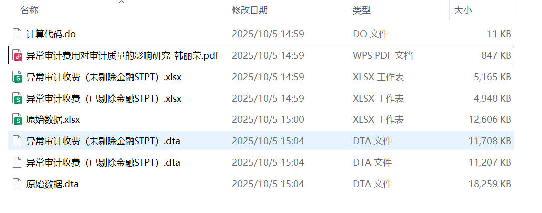 - 三个版本:异常审计费用(未剔除金融STPT)、异常审计费用(已剔除金融STPT)