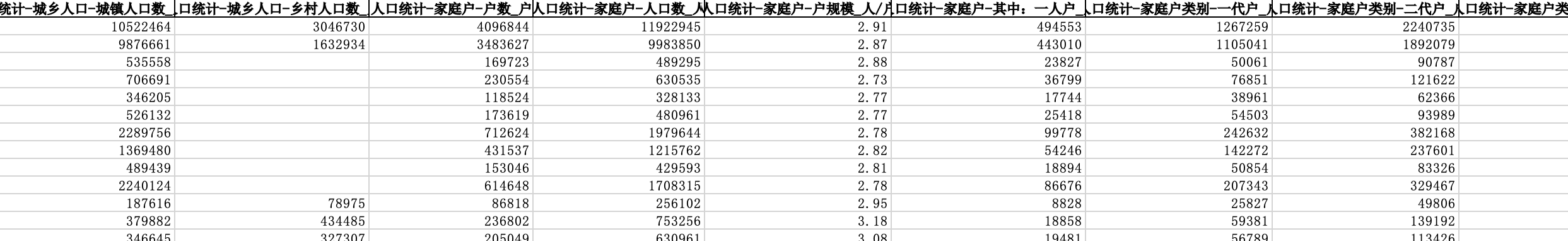 家庭户总人口-女性 | 0-14岁 | 0-14岁-男性 |
