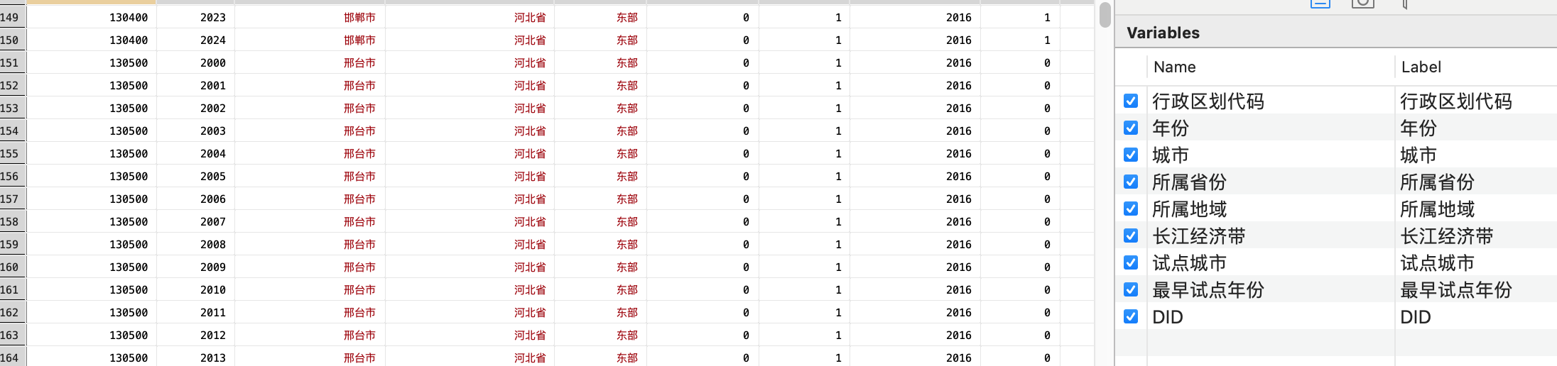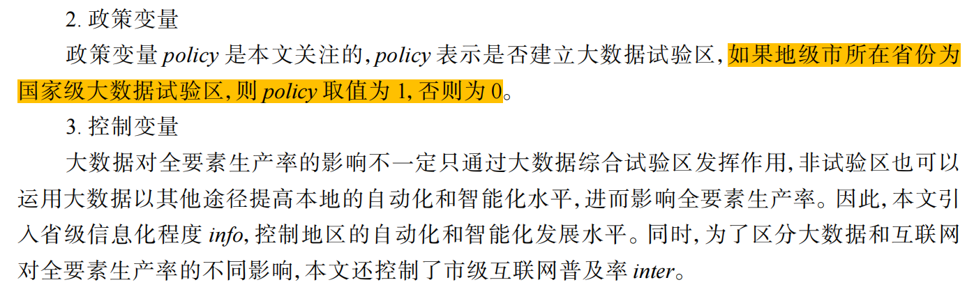 团队参照邱子迅(2021)一文中的做法,如果地级市的所在省份为国家级大数据试验区,则当年及以后的DID变量取值为1,否则为0