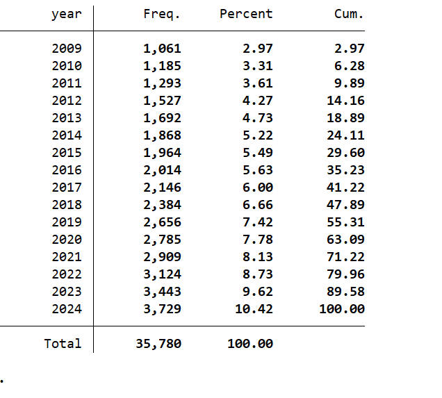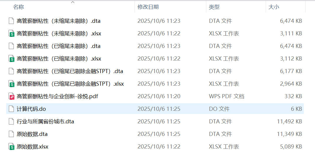 结果格式:Dta 文件(使用 Stata 打开)、Xlsx 文件(使用 Excel 打开)
