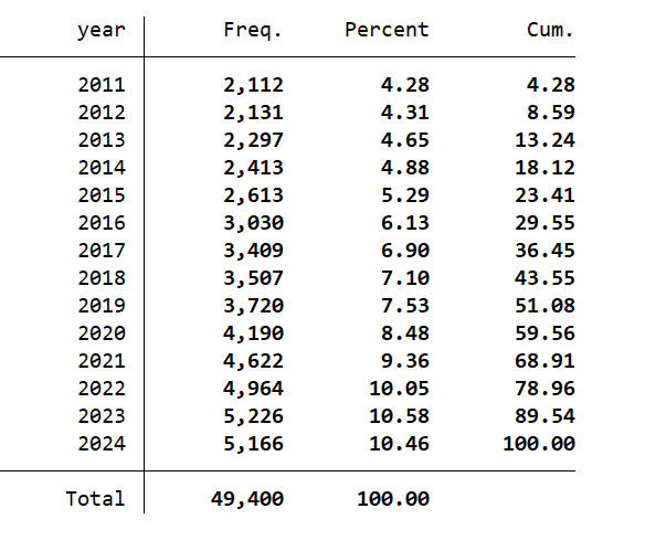 - 文件格式:Dta格式(使用Stata打开)、Xlsx格式(使用Excel打开)
