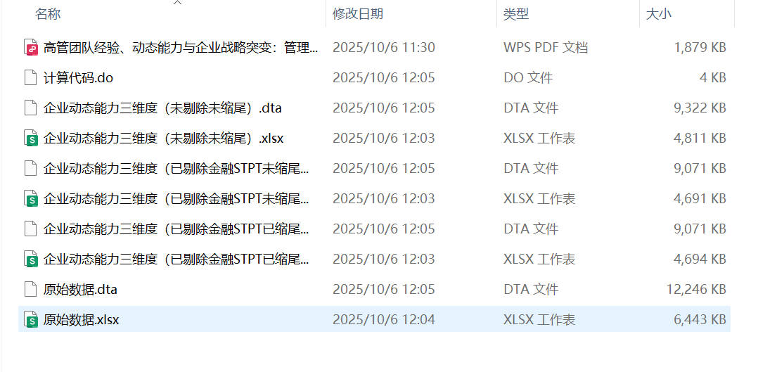- 三个版本:企业动态能力(未剔除未缩尾)、企业动态能力(已剔除金融STPT未缩尾)、企业动态能力(已剔除金融STPT已缩尾)