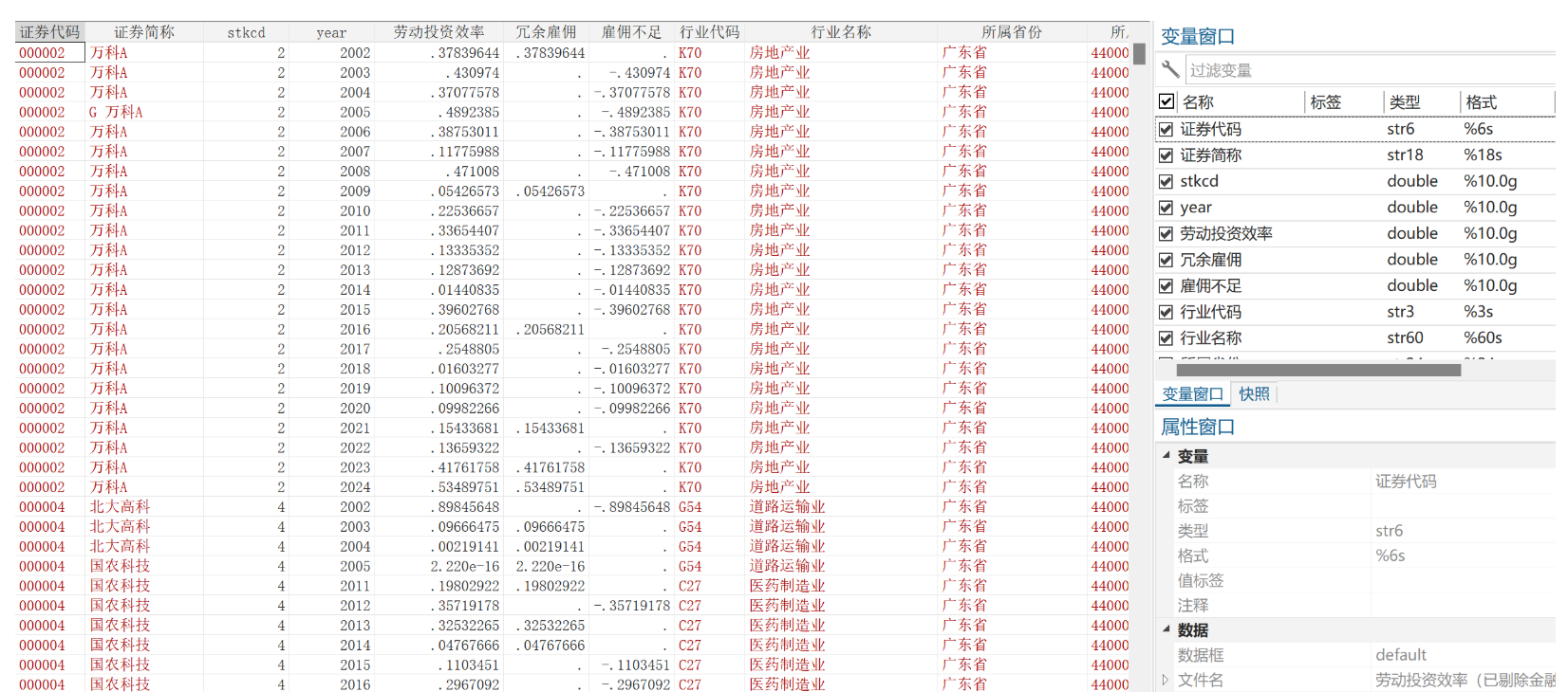 一、数据介绍数据名称:上市公司劳动投资效率数据+dofile