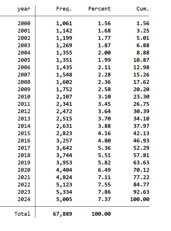 - 文件格式:Dta格式(使用Stata打开)、Xlsx格式(使用Excel打开)