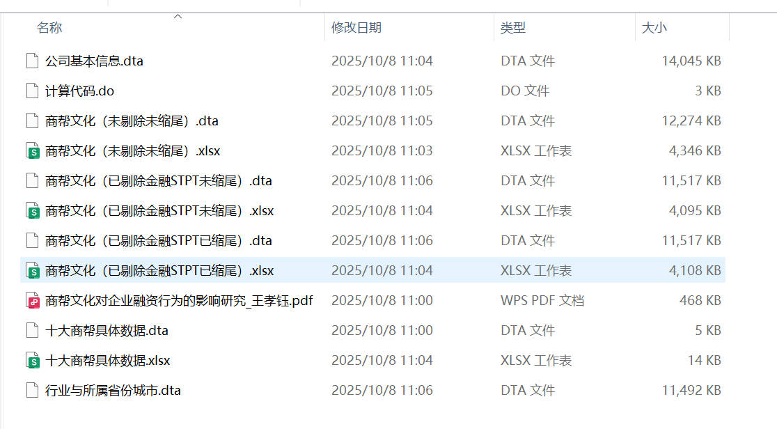 - 三个版本:商帮文化(未剔除未缩尾)、商帮文化(已剔除金融STPT未缩尾)、商帮文化(已剔除金融STPT已缩尾)