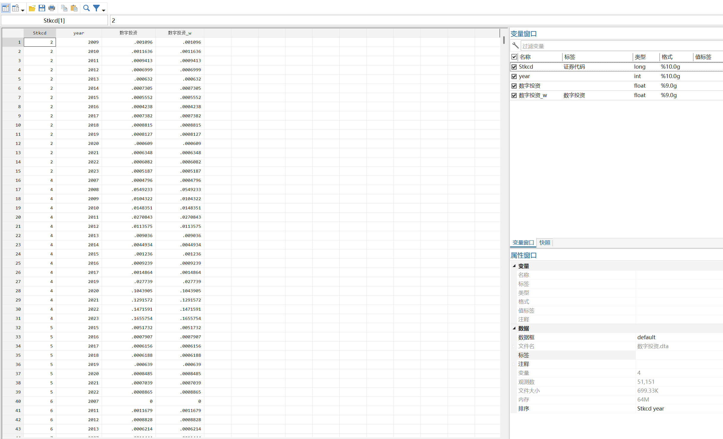 根据王宇等(2020)的研究方法,本文聚焦数字固定资产与数字无形资产核心要素。通过梳理企业年度财务报告中“固定资产明细项目”和“无形资产明细项目”,对相关数据进行筛选与整合。将筛选出的数字固定资产期末金额与数字无形资产期末金额进行加总,进而得出企业数字投资总额。最终,数字投资(DI)的计算方式为:数字投资总额除以营业收入