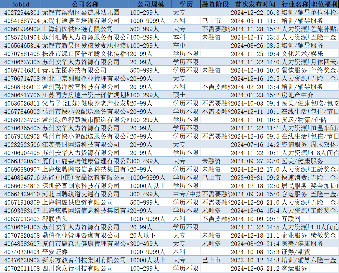 数据指标jobId | 公司名称 | 公司规模 | 学历 |