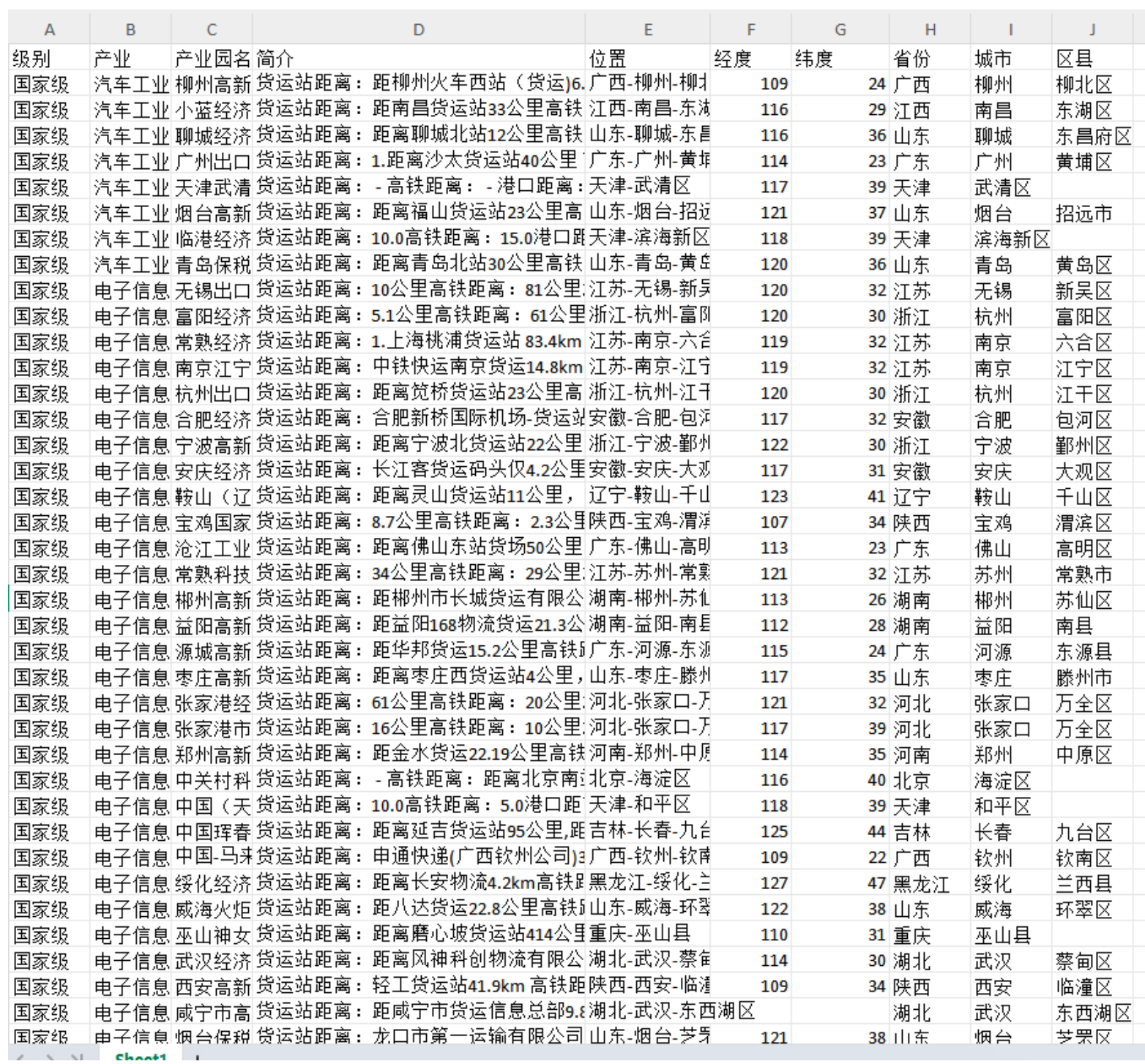 【10w+数据】国家级、省级、区县级产业园区清单数据excel整理版本