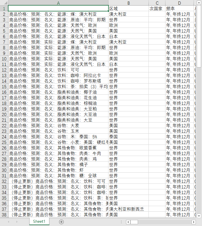 世界银行日本美国欧洲澳大利亚商品价格预测数据2010-2035能源食品农业原料金属及矿物