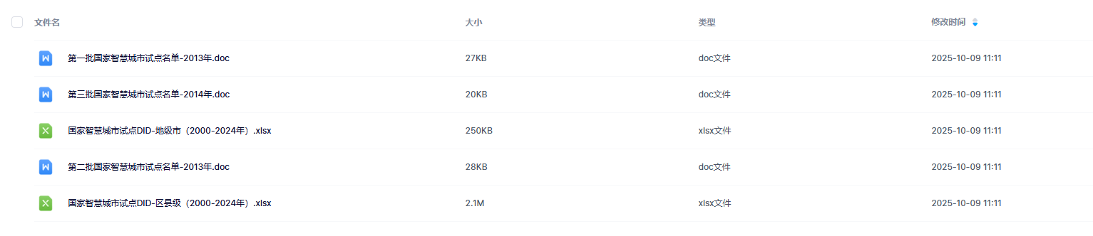 一、数据介绍数据名称:国家智慧城市试点名单DID数据
