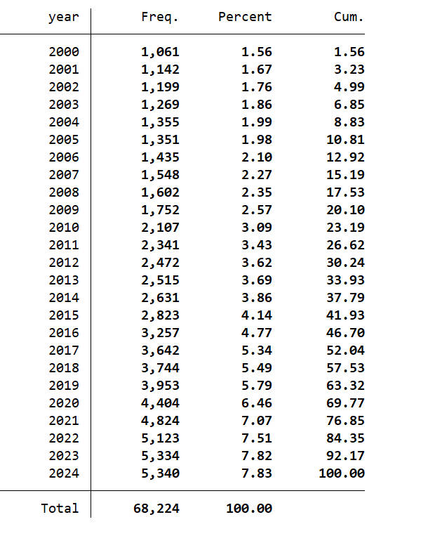 - 文件格式:Dta格式(使用Stata打开)、Xlsx格式(使用Excel打开)