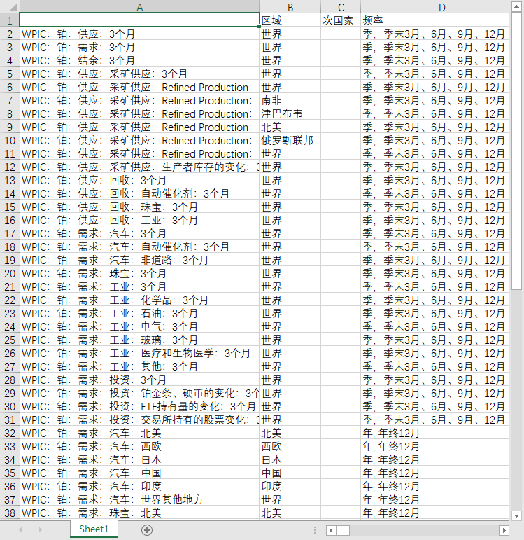 WPIC:铂:供应:采矿供应:Refined Production:南非:3个月