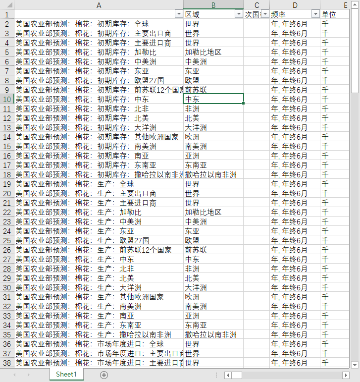 美国农业部预测:棉花:收获面积:其他欧洲国家
