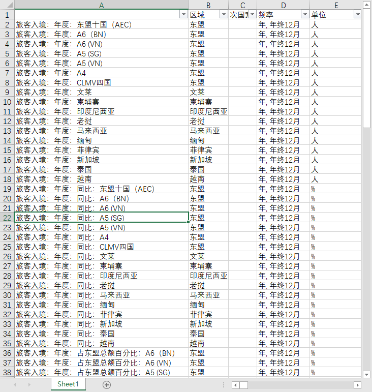 旅客入境:从东盟:年度:向东盟十国(不包括缅甸和越南)