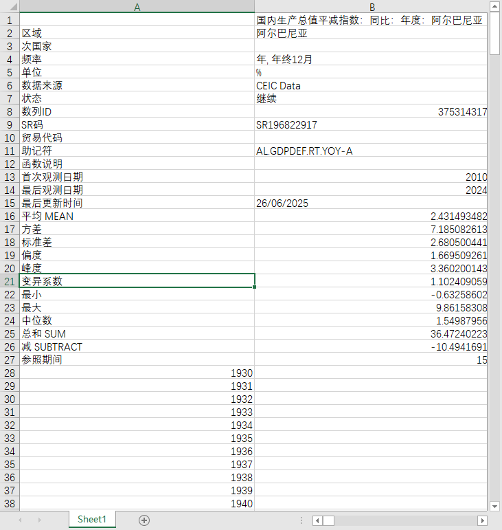 全球世界各国地区国内生产总值GDP、及平减指数同比增长年度数据1995-2024
