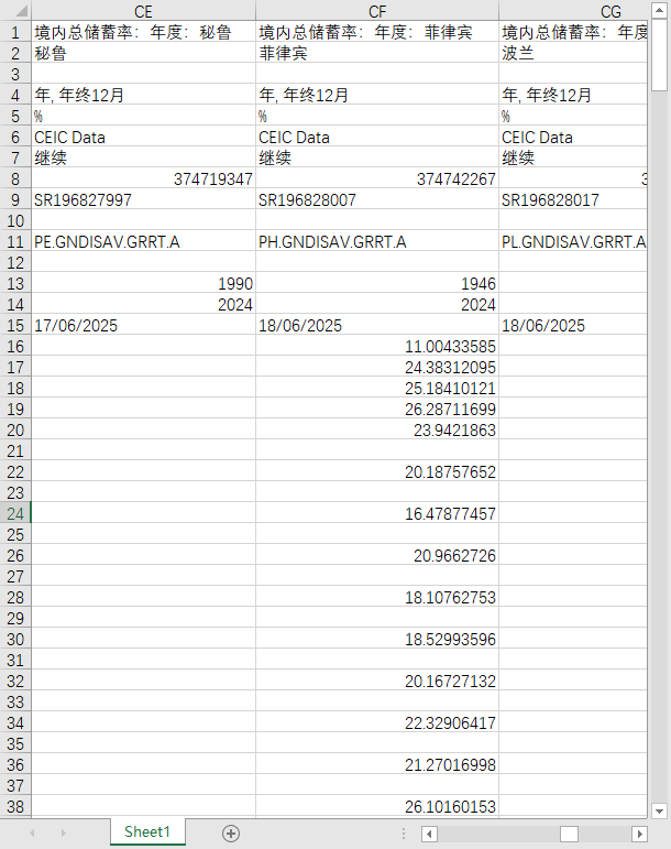 全球世界各国地区国内生产总值GDP、总储蓄率年度数据1995-2024