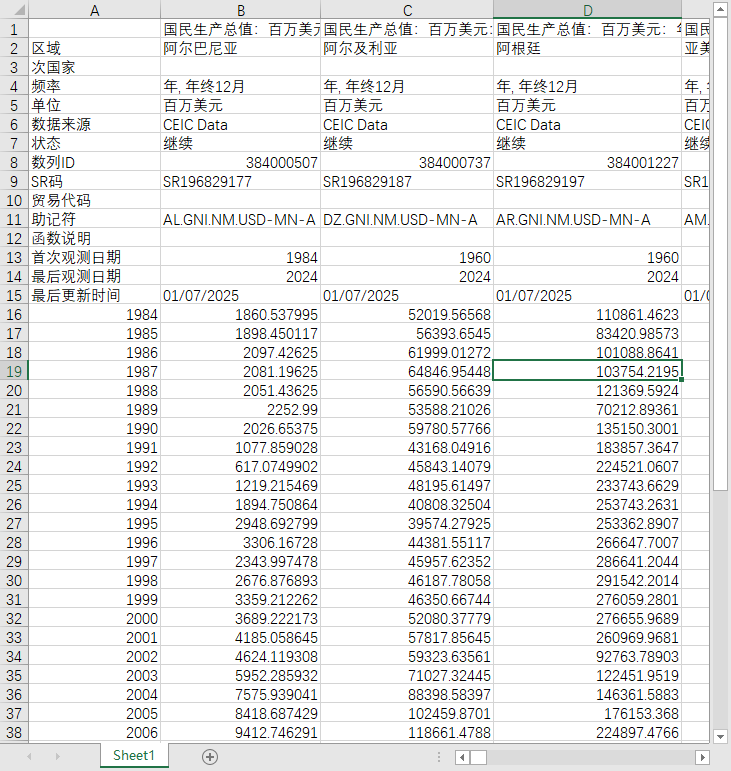 全球世界各国地区国民生产总值、人均国内生产总值GDP美元年度数据1995-2024