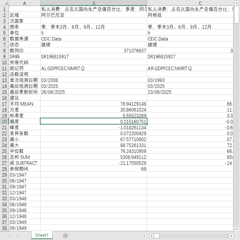 全球世界各国地区个人消费支出、私人消费占名义国内生产总值GDP百分比季度数据1995-202503