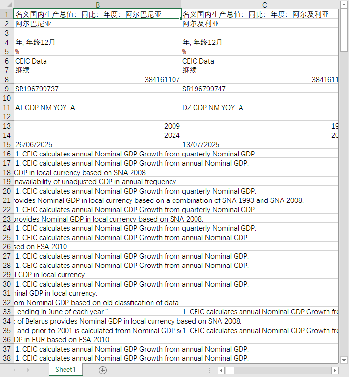 全球世界各国地区名义国内生产总值现值GDP、及同比增长年度数据1995-2024