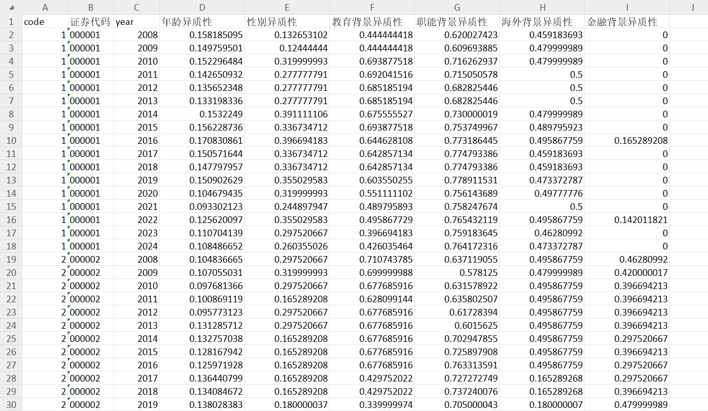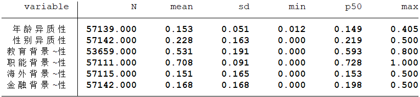对于教育背景、职能背景等分类变量,采用Herfindal--Hirschman系数(赫芬系数),