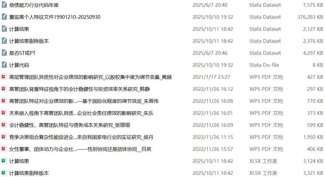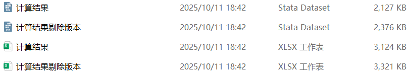 版本2:在做了上述剔除处理的基础之上,同时剔除了金融行业的样本和当年年末被ST、*ST或PT的上市公司,文件名为“计算结果剔除版本”