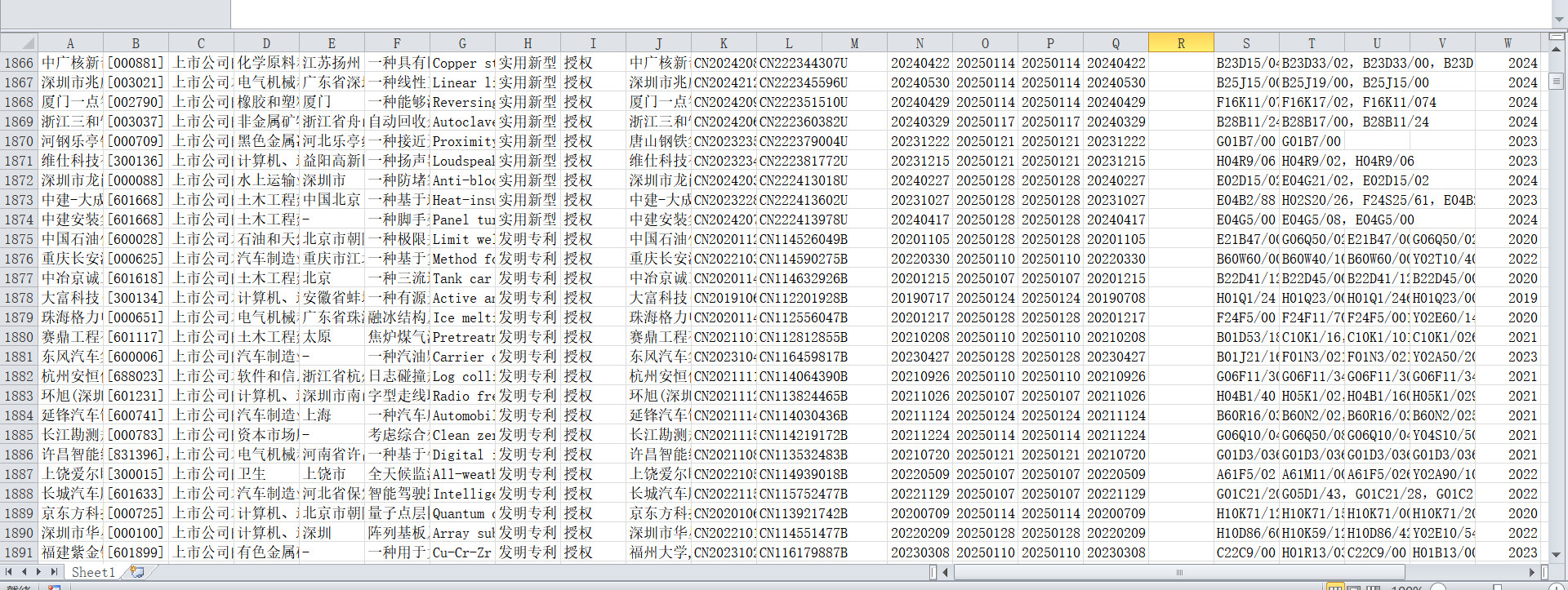 2.数据指标:关联企业名称 关联股票代码 与上市公司关系 上市公司行业 企业注册地 专利中文名称 专利英文名称 专利类型 专利状态 申请人 专利申请号 专利公开号 国际申请号 申请日期 公开日期 授权日期 最早优先权日期 发明人 IPC主分类号 IPC分类号 CPC主分类号 CPC分类号 申请年份 公开年份 授权年份 母申请 子申请 中文摘要 英文摘要