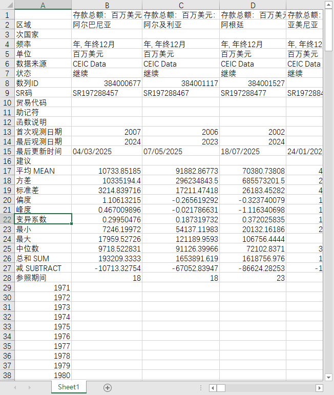 全球世界各国地区存款总额美元、及同比增长率2000-202506月度季度年度数据