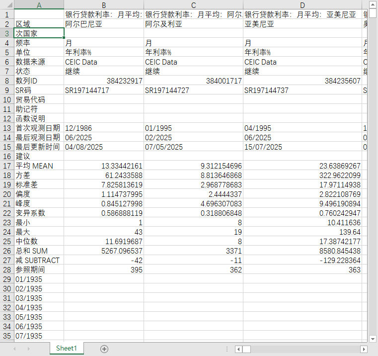 全球世界各国地区银行贷款利率每日度数据1992-202508、2000-202506月度
