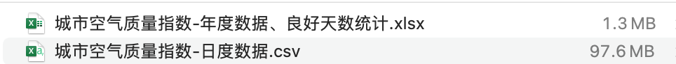 1、数据源名称:中国城市空气质量每日数据、良好天数