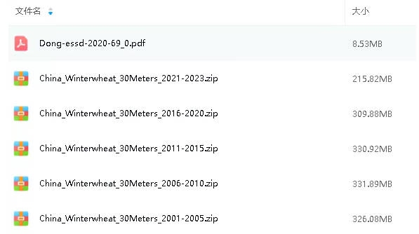 Jie Dong, Yangyang Fu, Jingjing Wang, Haifeng Tian, Shan Fu, Zheng Niu, Wei Han, Yi Zheng, Jianxi Huang, and Wenping Yuan, 2020. Early-season mapping of winter wheat in China based on Landsat and Sentinel images. Earth System Science Data, 12(4): 3081-3095.