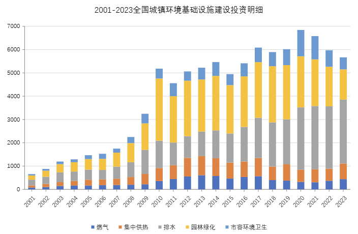 - 2001-2023全国城镇环境基础设施建设投资总额