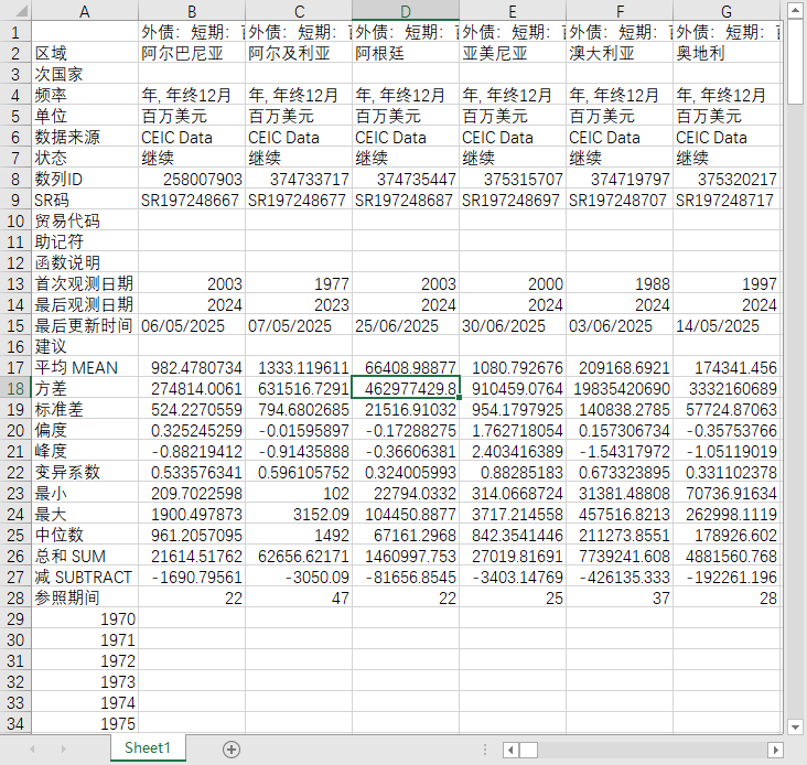 全球世界各国地区国际收支外债短期及占名义国内生产总值百分比2000-202506月度季度年度数据