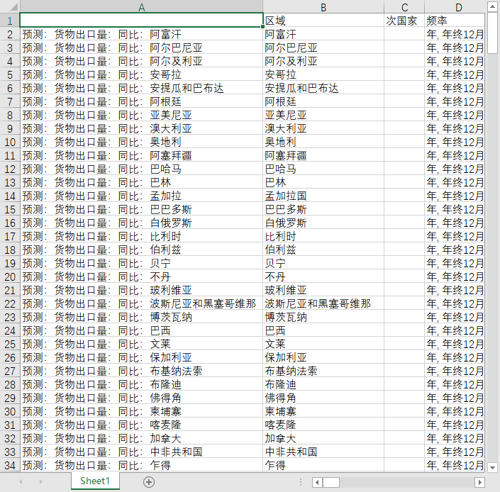 全球世界各国地区货物贸易进出口进口量出口量同比1980-2030IMF世界经济展望预测数据