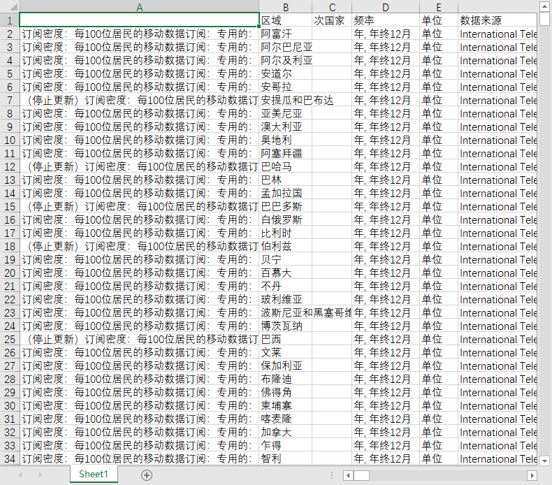 指标包含的国家和地区有200个左右: