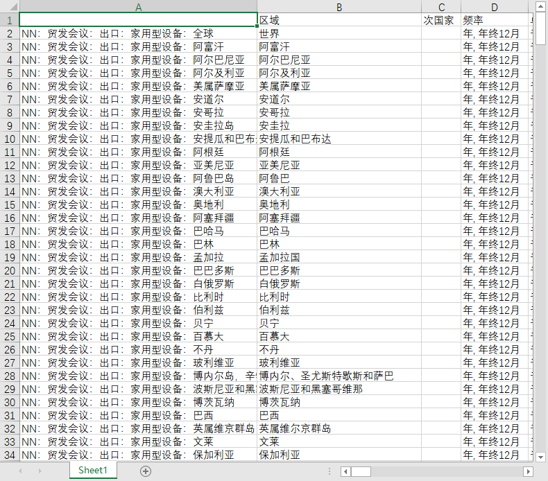 全球世界各国地区电子产品国际贸易HE家用型设备进口出口值1995-2024贸发会议UNCTAD数据