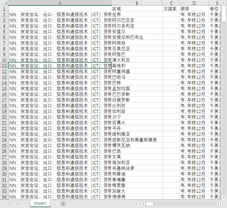 全球世界各国地区国际贸易信息和通信技术货物进口出口值2000-2023贸发会议UNCTAD数据